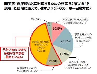 子のいる家庭の半数以上が非常食を備えておらず