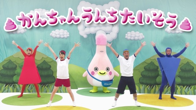 動画にはイチジク製薬親善大使を務めるコーポレートキャラクター「かんちゃん」をはじめ、天使すぎる踊り手として話題の「神沢有紗」さん、元保育士であそびダンス作家の「福田りゅうぞう」さんらが登場。中野先生のアドバイスを受けた福田さんが考案した、可愛い歌詞と振付けに合わせて元気いっぱいに踊ります。