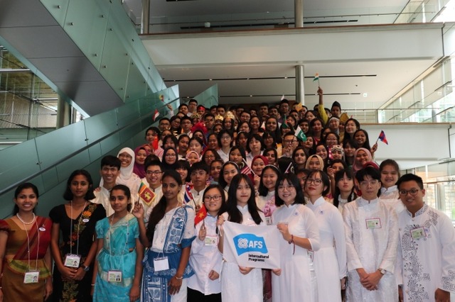 世界大戦中に傷病兵の救護輸送に携わったアメリカのボランティア組織American Field Service(アメリカ野戦奉仕団)の活動を起源に持ち、「ともに生きることを学ぶ(learn to live together)」ために異文化学習の機会を提供している非営利の民間教育団体。日本では1954年に8名の高校生を米国に派遣したことに始まり、現在は約40カ国に毎年約500名を派遣、約50ヵ国から毎年約500人を受け入れています。http://www.afs.or.jp/about-afs/