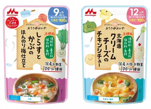 森永乳業は、レトルトパウチタイプのベビーフードの「おうちのおかず」シリーズから、「しらすとかぶのほんのり梅仕立て」や「北海道クリームチーズのチキンシチュー」など8品を9月3日(月)より全国にて新発売し、ラインアップを拡充いたします。