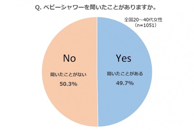 ベビーシャワーを聞いたことがあるか、という問いに対し、約半数が「聞いたことがある」と回答。