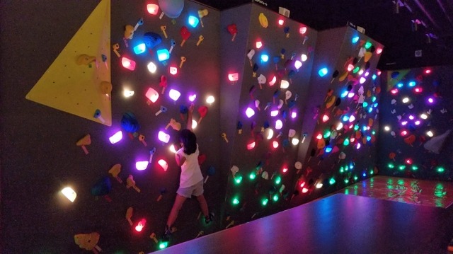 「みちびクライミング」では、登録されたルートのホールドが順番に明るく点灯。正しいホールドを持つことができたら、荷重センサーにより音が鳴るとともに次のホールドが点灯します。ゴールのホールドは、点滅によって知ることができます。