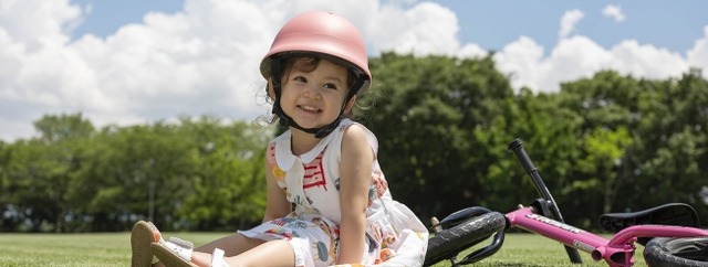幼児は十分に頭骨が形成されていないことに加え、身体の大きさに比べて頭部が重いため、転倒すると頭部にケガをしやすく、自転車乗車時のヘルメットを着用することが特に重要です。