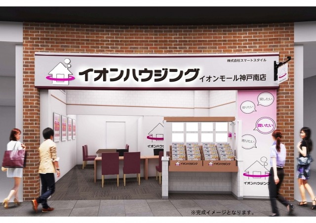 「イオンハウジング イオンモール神戸南店」は、イオンハウジングが現在16店舗(イオンモール直営店:5店舗、フォーメンバーズ運営店舗:11店舗)を展開する中、17店舗目として出店するAHN第1号店であり、不動産仲介業を営むスマートスタイルにより運営されます。