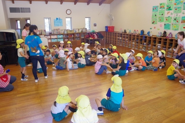 今回9月の交流では、保育園の子ども達と幼稚園の子ども達で同じ小学校区の仲間に分かれての交流も行います。近隣の保育園との交流という事で、同じ小学校へ進学する子も多く、小学校へ行ってからの友達作りがスムーズに進む効果が得られるなど、有意義な交流となっています。