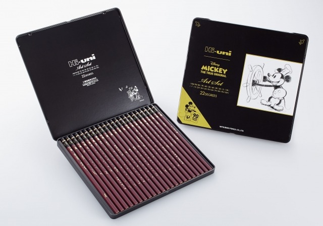 三菱鉛筆株式会社(社長:数原英一郎)は、1966年の発売以来のロングセラーで、世界最多の硬度幅を誇る最高級鉛筆『Hi-uni(ハイユニ)』の全22硬度をセットにした『ハイユニ アートセット』から、世界中で愛されているディズニーの人気キャラクター「ミッキーマウス」のスクリーンデビュー90周年を記念し、特製の『ミッキーマウス90周年記念 /ハイユニ アートセット』(本体価格:5,000円+消費税/硬度幅:10B~10H/全22本)を10月19日(金)に5,000セットの数量限定で発売いたします。