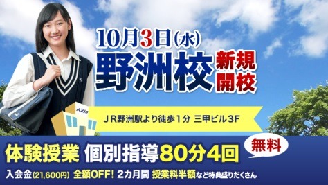 開校を記念し、特典をご用意しました。なお、校舎見学・学習相談は、いつでも承っておりますので、ぜひこの機会に「個別指導Axis野洲校」までお越しください。