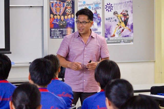 JAPANサッカーカレッジ提携先「株式会社Y.E.S. ESL International, Inc(代表者:山内周司)」の山内周司代表より2019年度に新規導入される女子サッカー専攻科及び女子高等部を対象とした「米国女子サッカー留学プログラム」、サッカービジネス科及びマネージャー・トレーナー科を対象とした「フロントスタッフインターンシッププログラム」の説明会が行われました。米国、カリフォルニア州サンディエゴを拠点に開催される同プログラムを通じて同校ではこれまでの「サッカーを通じた人間形成」に加えて「英語教育」に特化し、世界を代表する国際人の育成を目指します。