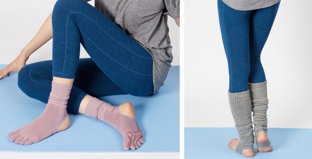 指先まで覆われた5本指ソックスは、滑り止めを広範囲に施し、かかと部分をあけてポーズが取りやすい形に仕上げました。(写真左)