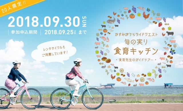 かすみがうら未来づくりカンパニーでは、サイクリングをしながら家族で収穫体験や、料理教室を楽しめる「かすみがうらライドクエスト 旬の実り食育キッチン~食育先生のガイドツアー~(http://kasumigaura.miraidukuri.jp/ridequest/event/shokuiku/index.html)」を2018年9月30日(日)に開催いたします。 地域の魅力を自転車で探訪する体験型サイクリングプログラム「かすみがうらライドクエスト(http://kasumigaura.miraidukuri.jp/ridequest/)」の、秋の特別ガイドツアーとして、家族で楽しめる食育プログラムを実施します。