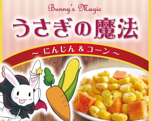 これを受けて、「コーン」にホワイトチョコを染み込ませ、にんじんとミックスすることでより手軽に野菜を食べられるようにした新形態「うさぎの魔法 にんじん&コーン」を商品化しました。