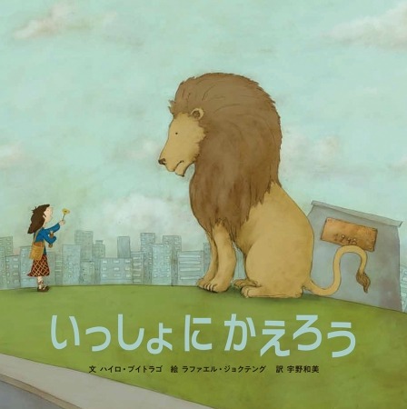 いつもはひとりで帰る道も、ライオンが一緒なら安心。
