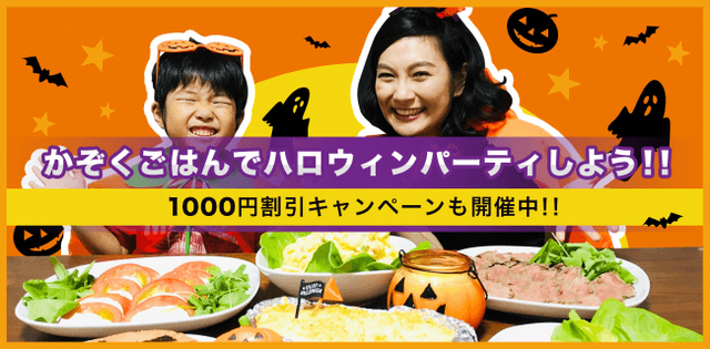株式会社かぞくごはん(本社:東京都渋谷区、代表取締役:高橋 未来)は、子ども主体のご自宅料理体験サービス「かぞくごはん」で、2018年9月18日(火)より、ハロウィン&1000円OFFキャンペーンを開始いたしましたことをお知らせいたします。