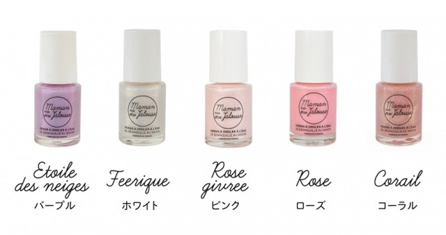 お子さまの爪にも安心なウォーターベースのネイルポリッシュ。水と石鹸の手洗いで簡単に落とせます。