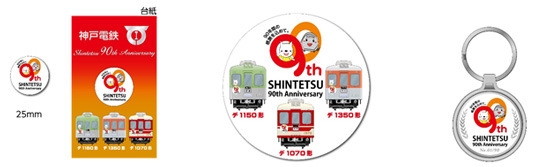 旧塗装を復刻したメモリアルトレイン2編成(デ1150形・デ1350形)、本年3月の車両更新時、塗装を塗り直した1編成(デ1070形)を加えた3編成と、鉄道開業90周年ロゴマークをデザインに取り入れています。