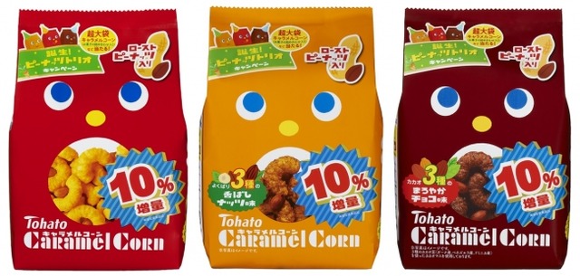 なお、好評発売中の「キャラメルコーン」と、新フレーバー2種を対象に、2018年9月17日より期間限定で約1ヶ月間 ※、10%増量キャンペーンを実施いたします。