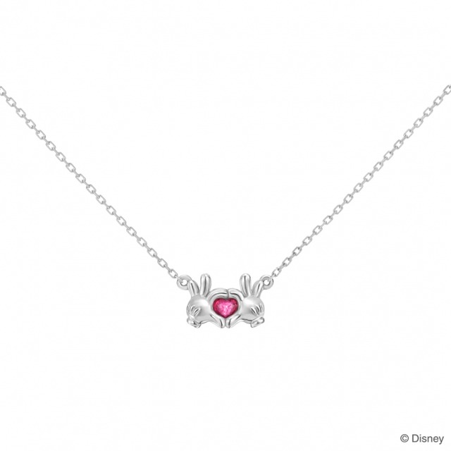 ミッキーの手がつくるハートは、ミニーへの変わらぬ愛情の証。あふれる想いを赤いルビーに詰め込んで。