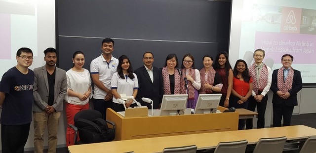 今年6月には、本学大学院現代経営研究科の創立10周年を記念して、キングス・カレッジと本学大学院生との合同リサーチプロジェクトを実施しました。キングス・カレッジから教員と5名の大学院生を招待し、「東京における都市ビジネス」をテーマに、ネパールと日本それぞれの視点から「民泊ビジネス」や「ソーシャルビジネス」などについてグループに分かれて共同研究し、リサーチ結果のプレゼンテーションを行いました。また、「大学院創立10周年記念イベント」や本学教授陣による特別講義・学外研究なども行い、ネパールと日本におけるビジネスの動向を共に学ぶとともに、双方の学生・教員が交流を深めました。