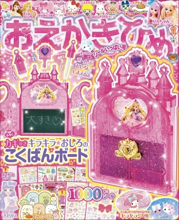 11月号は、お城のとびらがカギでひらく「キラキラ★こくばんボード」、マイメロディやすみっコぐらしなどの大人気キャラクターたちの「1000まいシール」、リカちゃんやぼんぼんりぼんの「ラブリーおてがみセット」など、豪華付録がもりだくさんです。