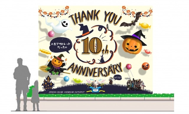 また、ハロウィーン装飾やトリックアートに彩られたフォトスポットを回ってスタンプを集めると、10周年特別ノベルティ(スマートフォン用レンズ)がもらえる「フォトスポットラリー」も実施。その他、10月8日(月・祝)には、かわいいキャラクター「仙台弁こけし」が一日支配人を務め、仙台市の「むすび丸」や仙台と宮城県の観光PR隊「伊達武将隊」などが登場するなど、10周年を様々な形で盛り上げます。