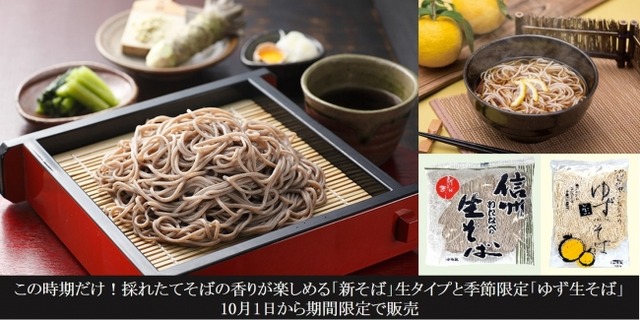 この時期にしか味わえない季節の商品「新そば」と「ゆず生そば」で、信州の秋の味覚を存分にお楽しみください。