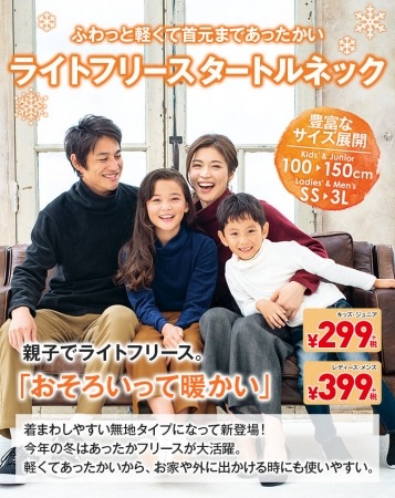 豊富なサイズ展開となっておりますので、ご家族でおそろいの暖かさをお楽しみください。