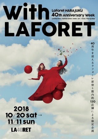 10月28日(日)に開業40周年を迎えるラフォーレ原宿では、2018年10月20日(土)~11月11日(日)の期間を中心として、「今までも、そして、これからも、ラフォーレはお客様やショップ、クリエイターの皆様とともに……」という気持ちを込めた限定企画 Laforet HARAJUKU 40th Anniversary Week「with LAFORET」を開催いたします。
