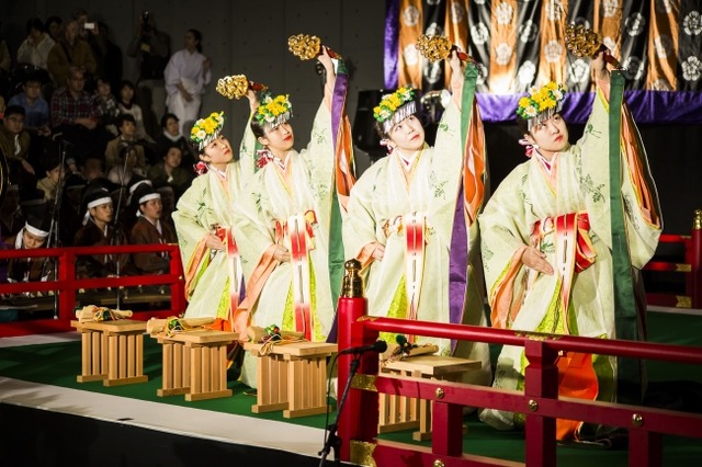 当日は学内に7m×7mの大きな舞台が登場します。祭壇に里芋や栗などの秋の作物を供える「献供(けんく)」の後、日本古来の楽器である三管と三鼓を演奏する「管絃(かんげん)」を披露。そのほかに5つの演目が奉納されます。昨年は地域住民や在学生ら約1000人が観覧した人気行事で、今年も即位の礼や大嘗祭(だいじょうさい)を控えて日本文化への意識が高まる中、多くの来場者が見込まれます。