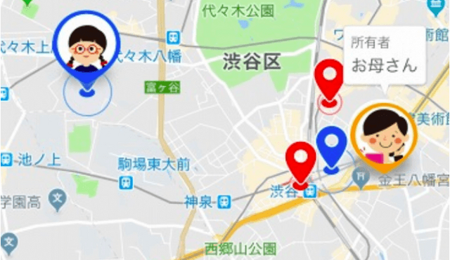 (2) 子どもの現在地に加え、保護者の現在地も表示