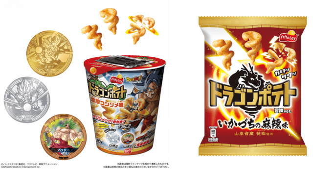 ジャパンフリトレー株式会社(カルビーグループ、本社:茨城県古河市、代表取締役社長:岩崎 直哉)は、株式会社バンダイ キャンディ事業部(本社:東京都台東区、代表取締役社長:川口 勝)とコラボレーションし、アニメ「ドラゴンボール超」の描き下ろしイラストと劇中場面カットがデザインされた“ドラゴンメンコ”がついたカップスナック菓子、『ドラゴンボール ドラゴンポテト(ブッチギリマッチVer.)』を全国のスーパー、コンビニエンスストアのお菓子売場にて、2018年10月29日(月)より展開します。(販売元:株式会社バンダイ)
