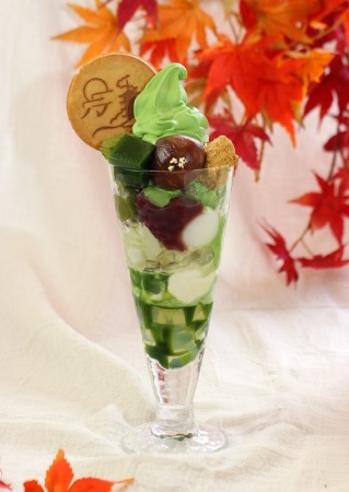 今も昔も変わらぬ感謝の気持ちを込めた贅沢パフェ。抹茶ソフトクリーム、抹茶アイス、抹茶ゼリー、抹茶カステラ、抹茶わらびもち、抹茶ゴーフレットと抹茶尽くしに仕上げました。