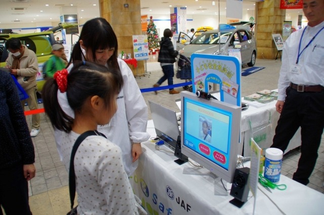 イベントに出展するJAFのブースでは、「子ども安全免許証」の発行を行います。「子ども安全免許証」は、タッチパネル画面で名前、生年月日を入力して写真を撮り、交通安全クイズに答えた後にその場で発行しお渡しします。お子さまが楽しみながら交通安全が学べる、JAFが出展する各種イベントで人気のコンテンツです 。