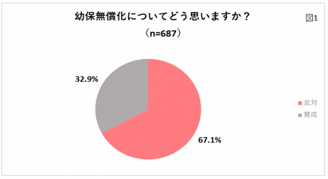 今回のアンケートでは、幼保無償化に67.1%が反対と回答する結果となりました。