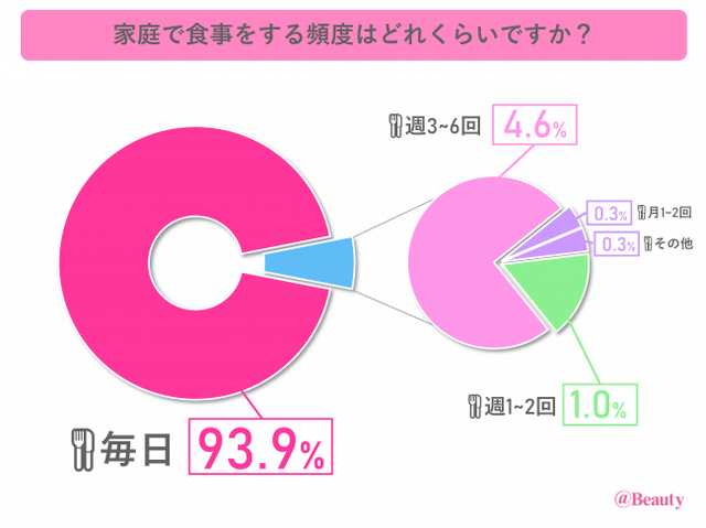 全国の30代~40代の子持ち女性に「家庭で食事をする頻度はどのくらいですか?」と質問したところ、なんと9割以上の女性が「毎日」と回答しました。