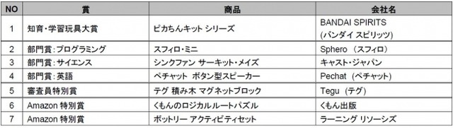 この賞は、Amazonで販売している国内外の数万点の知育・学習玩具の中から、Amazonカスタマーレビューと、脳研究、情操教育の分野で深い見識を持つ専門家に加え、今年から新たに、英語に精通したAmazonの社員の意見をもとに、子どもの知的発達や好奇心を刺激するおもちゃを選定するものです。
