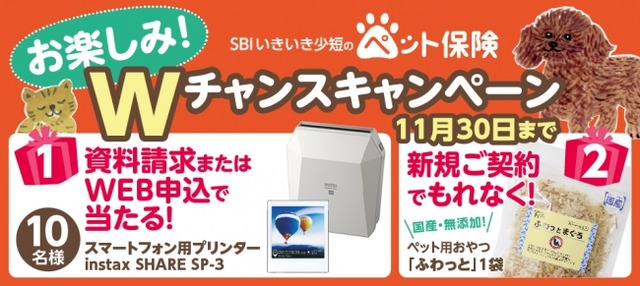 対象期間中に「SBIいきいき少短のペット保険」の資料請求またはWEB申込された方