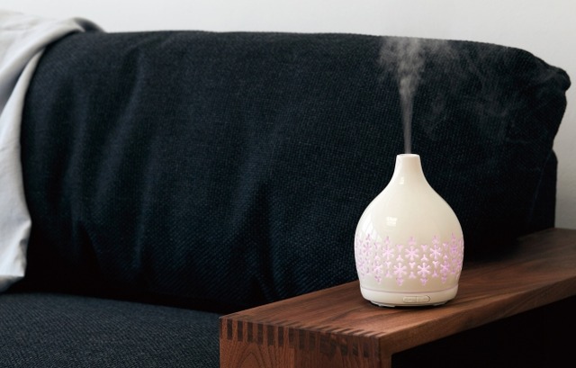 超音波が生み出すきめ細かいミストが空間にエッセンシャルオイルの香りを広げ、
