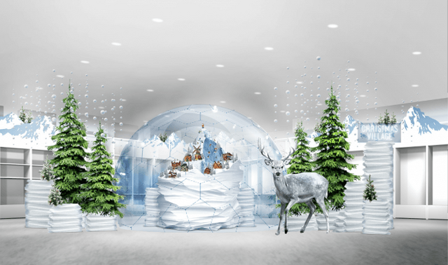 巨大ドームの中には雪山をイメージしたジオラマを設置。ゲレンデで遊ぶ小さなサンタクロースやクリスマスの置物などの商品により、外からも中からも写真映えする空間でクリスマスを盛り上げます。また「クラシックチェック」「スウィートパステル」「アーバンコテージ」の3つのテーマでシンボルツリーを設置し、各種アイテムを展開いたします。