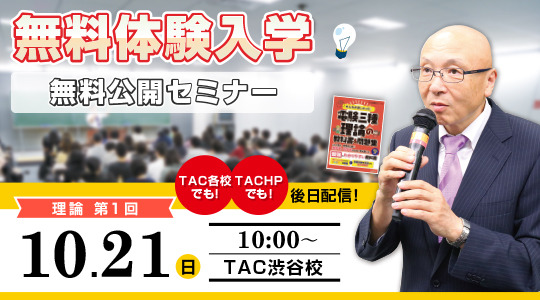 ・無料体験入学[理論] 10月21日(日)にTAC渋谷校にて実施