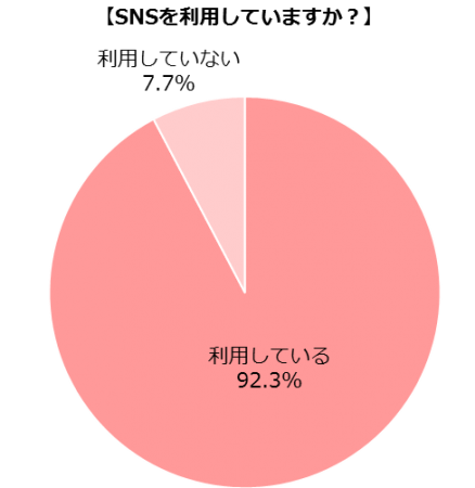 SNSの利用有無について質問したところ、92.3%のママがSNSを利用していると回答し、さらに74.5%が一日に複数回という高い頻度でSNSを利用していることが判明しました。