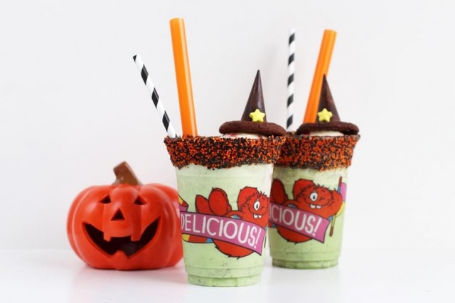 店舗でも人気の抹茶シェイクをベースに、ハロウィンを彩るたくさんの仕掛けが。みんな大好きアイスクリームにはベリーソースとクッキーでできたお馴染みのハットをオン。