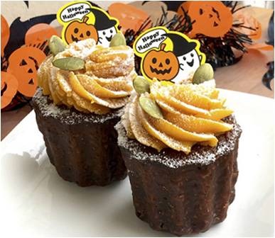 ハロウィン限定のカヌレが初登場!かぼちゃを練りこませたカヌレの上に贅沢にかぼちゃクリームを絞りました。どこから食べてもかぼちゃを味わえる一品です。