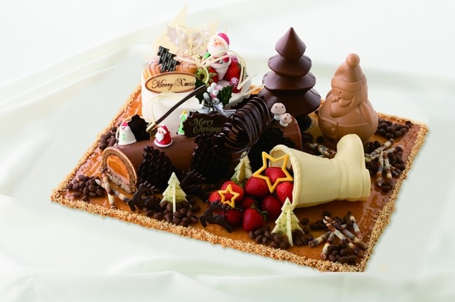 そのほか、ふわふわのシフォンケーキが好評の「クリスマス・シフォン」や、イチゴの「デコレーションケーキ」など、全8種類のクリスマスケーキをご用意しております。中でもお勧めなのは、定番のクリスマスケーキ「デコレーションケーキ」と「ノエル“カピトリーノ”」が一度に楽しめる『パーティークリスマス』(写真上)。ブーツから溢れ出すイチゴは喜ばれること間違いなしです。限定台数でご提供するケーキもございます。早めのご予約をおすすめしております。