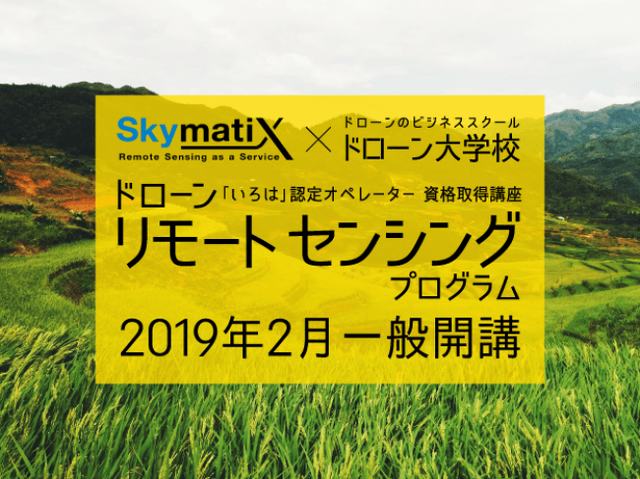 株式会社スカイマティクス(本社:東京、代表取締役COO 渡邉善太郎)は、あらゆる産業の課題をリモートセンシングで解決したいとの信念の下、三菱商事株式会社と株式会社日立製作所の出資により設立されました。ドローンによるリモートセンシングデータと画像処理解析・AIといった革新的なソフトウェアを融合し、農業や建設分野を始め、あらゆる産業のお客様の問題を解決するためのソリューションを開発・提供している企業です。一方の一般社団法人ドローン大学校は、”ドローンの安全な運航に必要な知識と技術を修得していただく”ことをミッションとし、”ドローンビジネスの創造とそこで生まれる雇用の創造”をビジョンとした2016年に開校したドローンスクールです。最低70時間を超える講義+実技で、ドローンの安全な運航に必要な知識と技術を修得できるスクールとしてドローンの運航アプリケーションを開発する企業からも高い評価を受け、テラドローン株式会社の認定校として、Terra Mapper認定資格取得講座も開講し、ドローン測量ができるプロパイロットを育成してきた実績もあります。