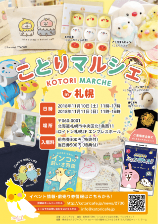 1.イベント名:「ことりマルシェ札幌2018/カワイイがいっぱい!小鳥グッズ&スイーツ市場」