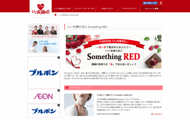 「いい夫婦の日」をすすめる会は、10月25日より公式ホームページ(http://www.fufu1122.com/)に『いい夫婦の日にSomething RED』ページを開設し、いい夫婦の日に夫婦が「Something RED」を贈り合うことを推進します。