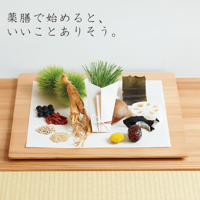おせち料理は、その年の家族の健康と幸せを想い、祈りを込めて整えるもの。昔ながらの一つ一つの品に意味があり、そしてからだに良い素材ばかりで作られています。これは、まさに「薬膳」が料理に込める精神と同じ。一年の始まりに、この願いを込めるのにふさわしい料理を。そんな気持ちで「薬おせち」を、今年もお届けします。