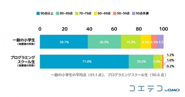 果となりました。特にプログラミングスクール生は「90点以上(一般の小学生:
