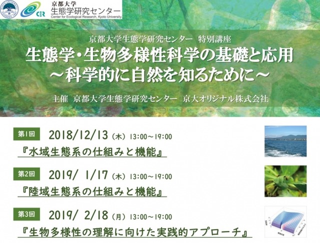 京大オリジナル株式会社(京都市左京区)は、京都大学の各分野、各学部の教授らによる専門講座の拡充を進めております。9月には農学研究科との共催での専門講座を実施しましたが、今回新たに、生態学研究センターとの共同主催で特別講座「生態学・生物多様性科学の基礎と応用」を開催いたします。