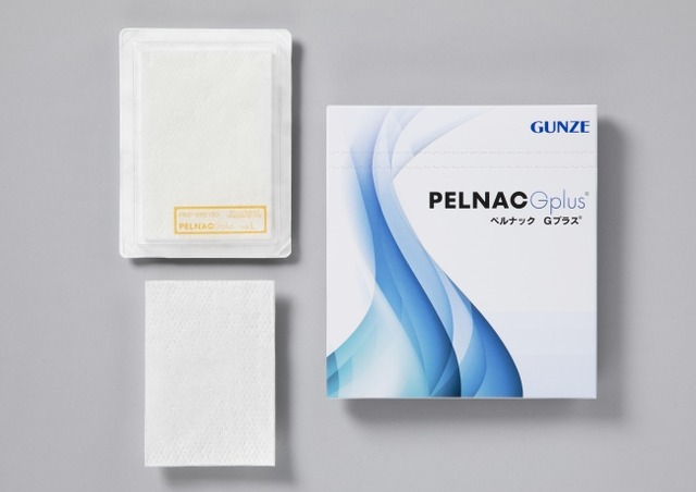 「ペルナック Gプラス(R)」は、コラーゲンスポンジ(アルカリ処理ゼラチン含有)と補強フィルムからなる二層性のコラーゲン使用人工皮膚です。また、本製品にはコラーゲンスポンジ(アルカリ処理ゼラチン含有)のみの単層のものと、滲出液排出のためのドレーンスリットを付与したものがあります。